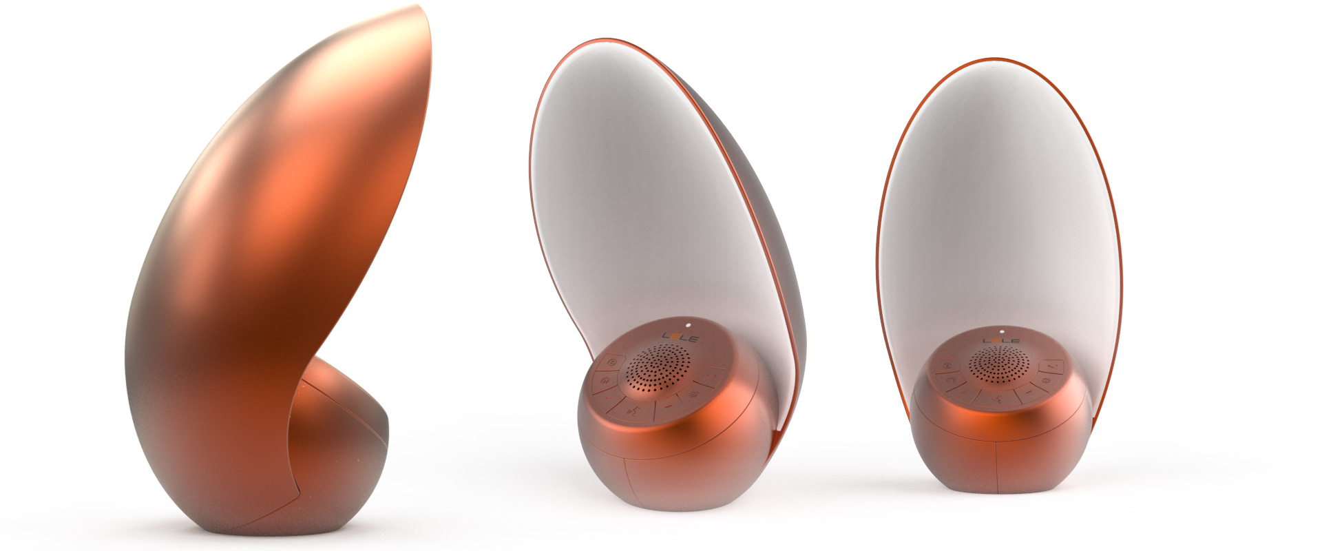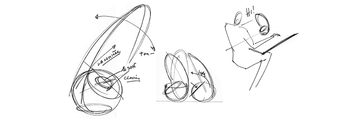 We have extrapolated the shape of a Nautilus, the led light and the sound coming from within. We wanted to give an expression of complicity and intimacy to enter into the dialogue.
