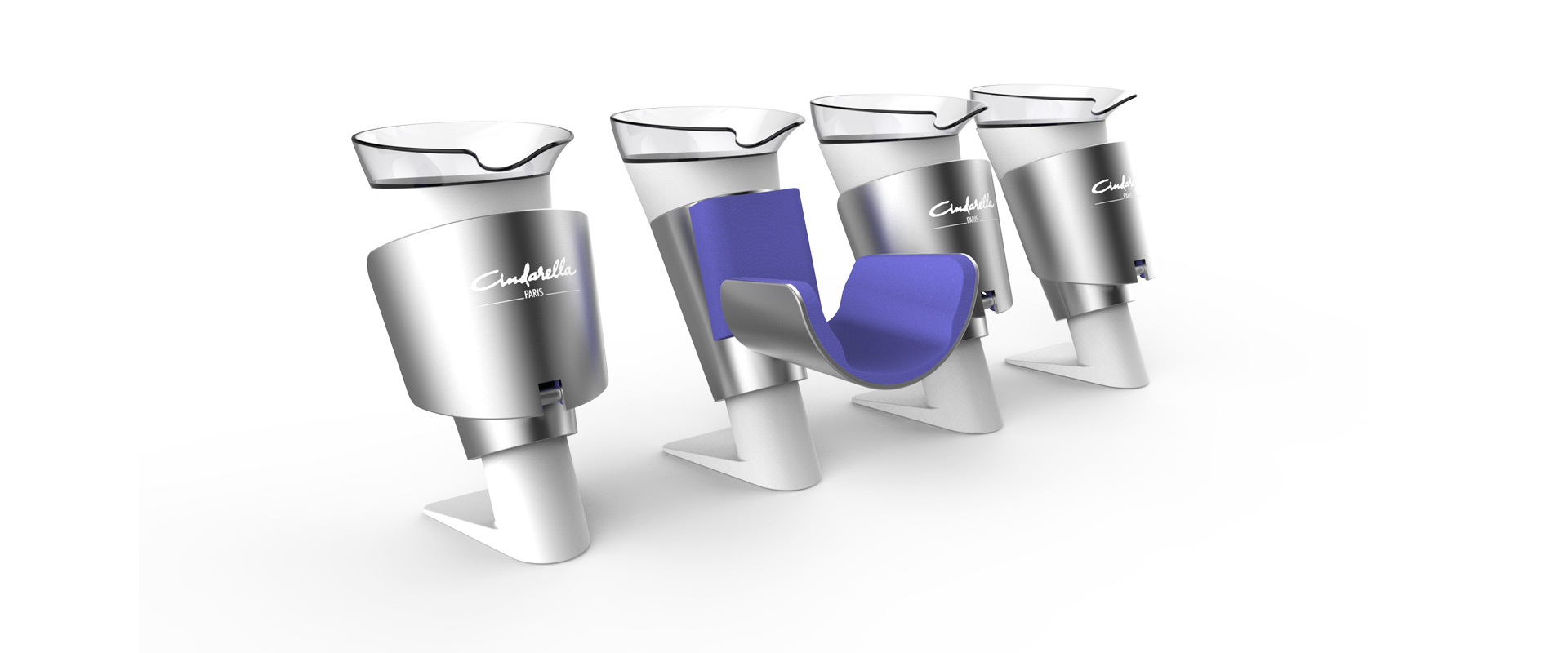 Cindarella is perhaps the last French company specialised in manufacturing hairdressing furniture. We made the COCOON series. It was a balancing act between the objectives in terms of ergonomics and image and the low production volumes. However they were able to assume the challenge making choices and optimising their production means. With their large experience, it allowed them to make the right choices.