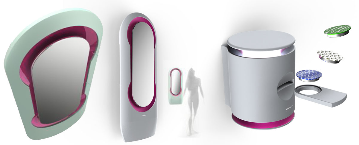 studyThe objective: these products are two examples coming from a Design Deployment study, more oriented to consumers. Mirror integrating a body dryer and an aromatherapy diffuser. It used some refills in the form of specific capsules. Making some consumables. allow to loyalty the consumer. It is a complementarity regarding Aupu activity (products for installers)