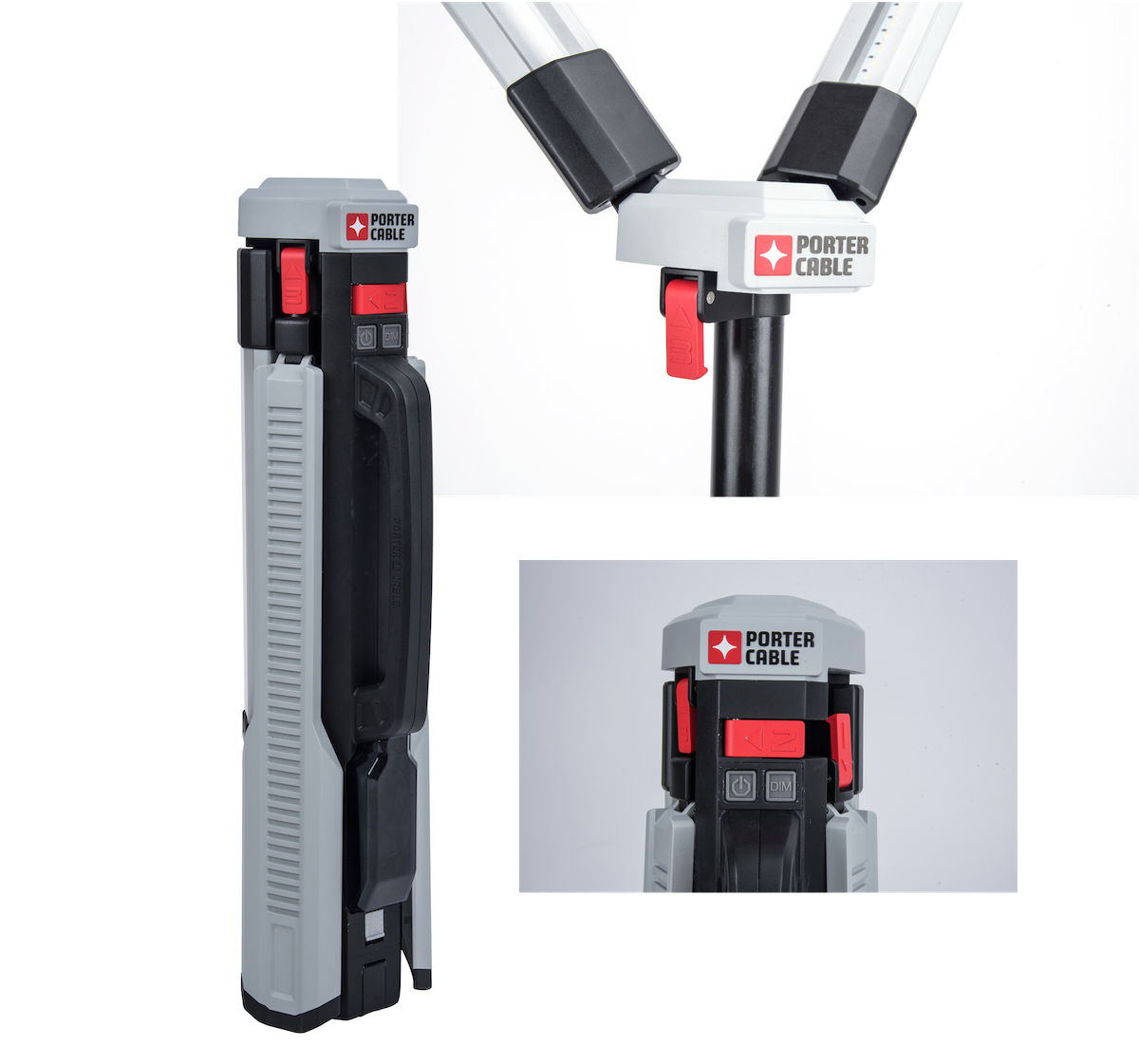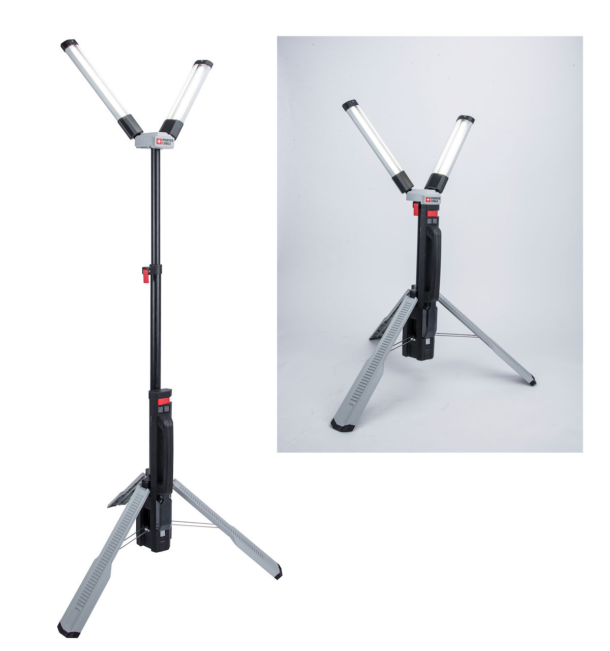 The objective when designing the COMPA, LED portable work light, was to make it very compact when closed for easier transporting and storing. When deployed it is tall. Stable with its tripod base and very functional with 2 powerful multi directional lights illuminating any work area.