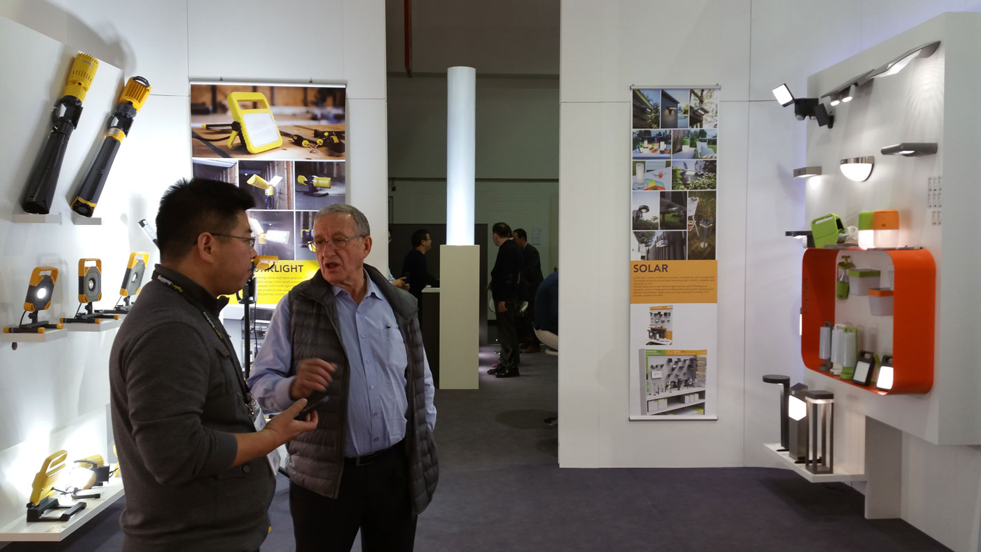 The booth is presenting the concept of Shop in Shop, reflecting the development of the company through different outdoor lighting segments: architectural, solar, work lights, camera and security etc… It is the opportunity for us to design the booth and show the latest products.