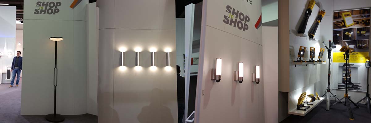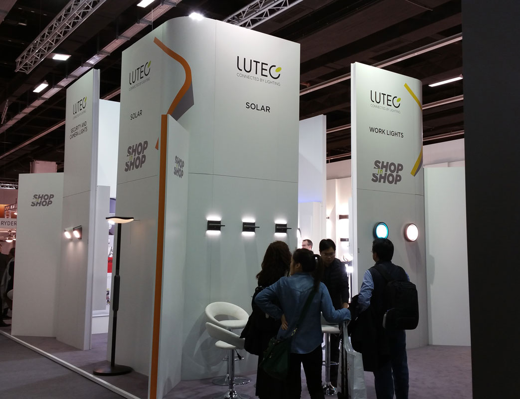 The booth is presenting the concept of Shop in Shop, reflecting the development of the company through different outdoor lighting segments: architectural, solar, work lights, camera and security etc… It is the opportunity for us to design the booth and show the latest products.
